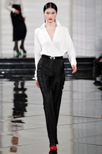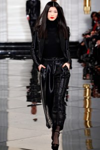 For the Fall 2011 collection, Ralph Lauren took quite a departure from Spring with a collection influenced heavily by China. Asian models dominated the runway, David Bowie’s “China Girl” played in the background and for beauty, there were sleek chignons with middle parts, bright red lips and flawless skin.