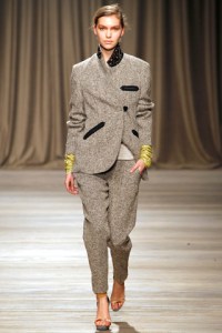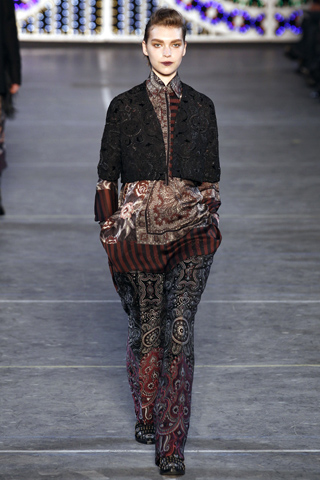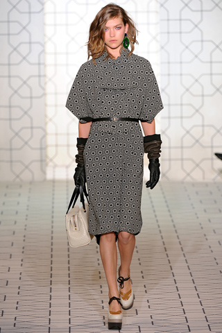 Fall 2011 was truly Arizona Muse’s season and she shined on the runway for some of fashion’s hottest designers. From pants-less at Louis Vuitton (left) to pretty in polka dots at Stella McCartney (middle) to polished in paisley at Kenzo (right), here are my top ten looks from her on the Fall 2011 runways.