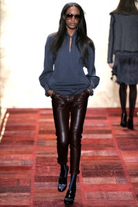 Tommy Hilfiger has made being preppy cool and for Fall 2011, he added an edge to his signature style. The looks had a certain sophistication and effortlessness to them that I really enjoyed. Form-fitting leather pants in chocolate brown as seen on Jourdan Dunn, cozy knits like the sweater worn by Melodie Monrose. The tailoring was absolute perfection, making each piece as chic as the last. Menswear-inspired suiting was in full effect and it looked super cool.