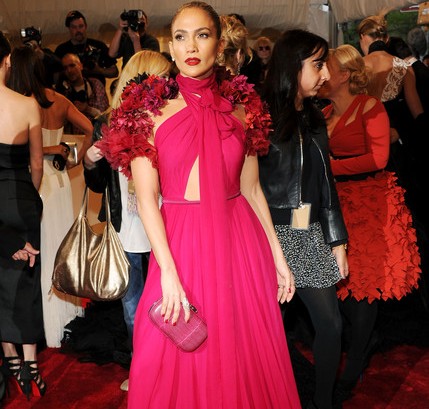 She went all the way fiery for the 2011 Met Gala in a red chiffon gown with rosette and cut out detailing from Gucci’s Fall 2011 collection, worn on the runway by Karmen Pedaru. For jewelry, she chose pieces from H.Stern: five “Stars” rings in 18K noble gold and diamonds and a pair of “Gold Stones” diamond earrings. I love this look on Jennifer and I believe that she has never looked more beautiful. It emits a sense of total power, sultriness and confidence and it is clear that red is her color.