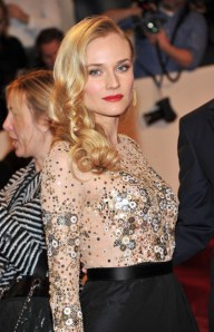 2. Diane Kruger – Jason Wu is one of her favorite designers, thus it wasn’t any surprise that she wore a dress from his Fall 2011 collection, worn on the runway by Mirte Maas: a nude and black embellished gown with a thigh-high slit for the ultimate in glamour. Clearly, Diane spent some time in the gym clearly indicated by her toned legs. Her curls gave the feeling of a 1950’s pinup girl and her strong matte red lip was just the perfect thing to add some color to the look.