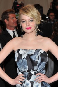 4. Emma Stone – Lanvin was her designer of choice and the black and white floral print was stunning. Her long statement earrings, messy chignon (crafted by hairstylist Mark Roszak) and vibrant pink lip were the perfect accessories for the dress.