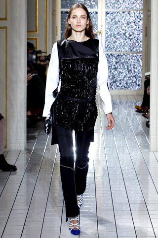 It is clear from the collection that colorblocking is in again for the season, but in more subdued shades including Ghesquière’s black, white and gray combinations. I loved that he continued his use of some of my favorite supermodels including Stella Tennant and Liya Kebede.