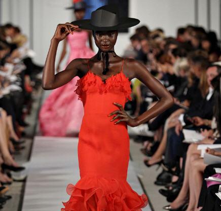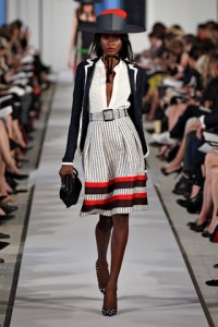 It is common knowledge that Oscar de la Renta caters to the ladies who lunch, but many of the pieces in this collection could be worn by a much younger crowd. Silhouettes ranged from long blazers and high-waisted striped A-line skirts on Aminata Niaria, crewneck sweaters and coral cropped skinnies on Rose Cordero, an interesting take on a chambray shirt on Jacquelyn Jablonski and many more. Oscar’s signature suits were shown as well as a plethora of knee-length shifts and sheaths on Ataui Deng, Siri Tollerød and others.
