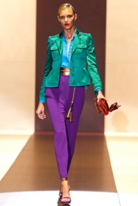 On Jessica White: Gucci Spring 2011 Jacket and Skirt, as seen on Anja Rubik and Snejana Onopka. Pink Patent Leather Pumps by Walter Steiger. Grey Ant Status Sunnies ($253). Hermès Cuff. June Ambrose Empress Turban ($150).