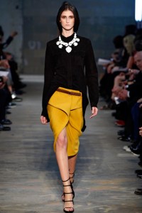 What Lazaro and Jack do best is an effortless styling that is definitely practiced, but looks nothing of the sort. A black suede shirt was carefully tucked into a yellow belted pencil skirt on Daiane Conterato and on Mirte Maas, the same was done with a leather shirt under a long leather jacket. Velvet and sheer fabrics were mixed seamlessly, as if the Proenza Schouler women just picks things out of her closet and throws them together in the coolest way. I am excited about seeing how these designs translate into stores and how the fashion set will be trying them out in the coming weeks.