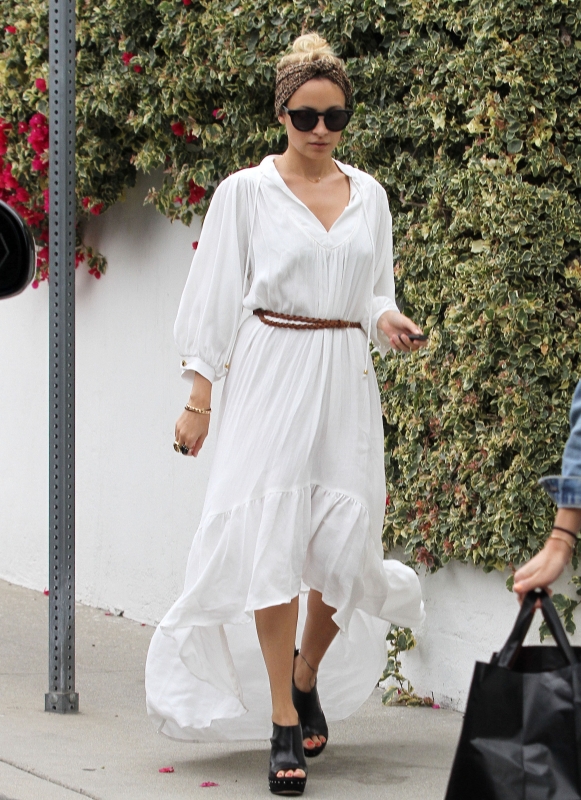 Nicole Richie did just that while out in Los Feliz. She paired Odylyne’s Barbet Long Dress ($308) with a turban headband and her own accessories: House of Harlow 1960’s Valery Wedges ($240) and Carmen Sunglasses ($138). Definitely a boho chic look and I love it. She is always seen out and about in her own pieces which is really a must for a celebrity designer.