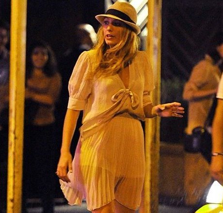 She was seen with her new beau out and about in New York City for date night. She kept it feminine but understated in a fedora, nude pleated dress and animal print pumps. Completely subdued, yet chic.