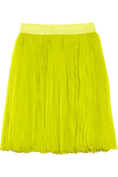 A pink tote would have gone so well with my outfit today! Meredith Wendell’s Mullet Two Tone Leather Tote (on sale for $347.50) is a glamorous, yet functional pop of color. With warm sunny days ahead, you can shine with Adam’s Broomstick Crinkled Silk Chiffon Mini Skirt ($300). After my purple satin tote purchase, I am in need of another Lanvin fix and the Horseshoe Heel Patent Leather Pumps (on sale for $752.50) are just the statement pieces to add to my wardrobe.
