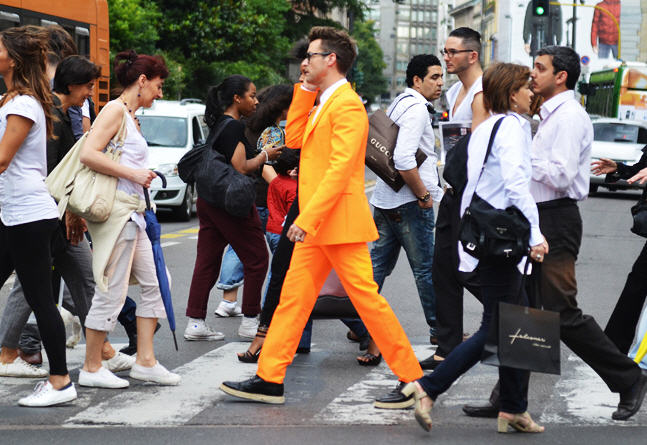 Seeing this image of stylist Brad Goreski at Spring 2012 Men’s Fashion Week in Milan inspires me to always go bright. Even if it is not “in”, who cares? Vibrant colors make you feel good and you will always stand out in the crowd, never having to pose in the shadow of someone else.