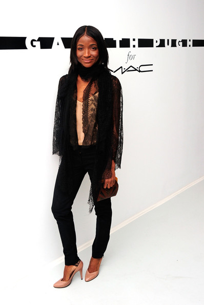 Valentino’s Dotted Bead Collar Blouse retails for $1090. Visit www.neimanmarcus.com to purchase. See Genevieve Jones’ look on the runway below and also see her wearing lace again at yesterday’s MAC Cosmetics and Gareth Pugh Collaboration Cocktail Party at The New Museum Sky Room in New York City.