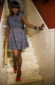 Autumn’s Fall 2011 collection is wonderfully titled “6 Nights with Jean-Michel”, referencing Basquiat. His influence can be seen in the vivid prints used in each piece. Here is what Autumn had to say about the name and what influenced her for Fall: “My latest collection—titled “6 Nights with Jean-Michel” [is] inspired by my protagonist’s six-night affair with artist Jean-Michel Basquiat. The collection incorporates my usual African influences and prints, and of course 5% of each sale is donated to healing sexual violence crisis in the Democratic Republic of the Congo- via Women for Women International. Examples of Basquiat’s work (my favorite artist) are referenced in some of the shots. The Location is the beautiful The Lion restaurant.” (MIMI Magazine)