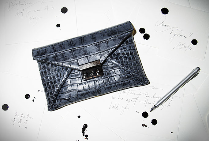 My favorite is the Lola Clutch ($350) which is featured above. It features hand-carved hardware and amazing cord detailing. The hand-cast rubber is fashioned to look like crocodile, thus giving you a taste of the exotic while still staying on budget. In a warm burgundy which Raven calls vino, the clutch will be totally on-trend for fall in one of the season’s most popular colors.