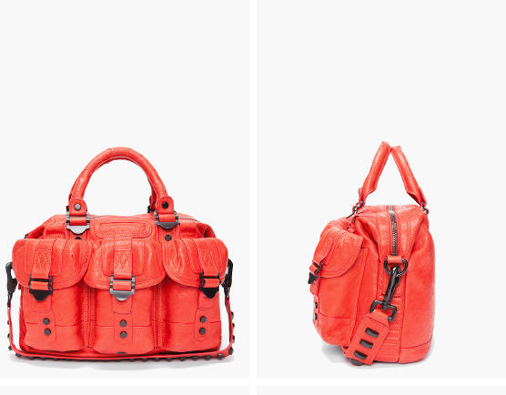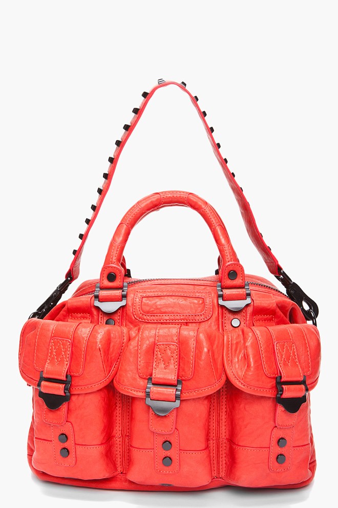 The Carla Tote is my favorite piece from the newest collection. Its coral red shade is just what you need to inject some color into your wardrobe and its front flap pockets serve as a place to hold a number of your valuables, as well as giving your ensemble a bit of edge. I also love the studded leather shoulder strap, which you can remove if you so choose.