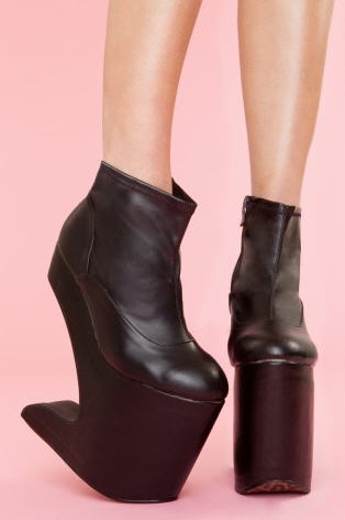 The Black Magic Platforms are not for the faint of heart, which is to be expected whenever you are imitating Gaga’s ensembles. They are crafted from vegan leather and boast an 8″ high heel: I would say don’t try these at home, but it’s probably safe to do so before attempting to teeter in them on the street. I personally wouldn’t dream of taking them on, but I know all the fashion-conscious risktakers will love getting their hands on this lower-priced version.
