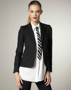Milly’s handbags are completely delightful. The Paige Patent Leather & Suede Bucket Bag ($375) is the perfect handbag to carry you through the Fall and Winter months. Herieth Paul worked Rebecca Taylor’s Ghost Flower Print Ruffle Dress ($425) on the Fall 2011 runway and you can too, especially when paired with Theyskens’ Theory’s wedges. You can never have too many black blazers and Alice + Olivia’s Kim Structured Blazer ($368) is the one to buy for the season.