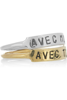 The Avec Gold and Silver Ring Set ($220) is darling: featuring the words “Avec Moi” and “Avec Toi”, meaning “with me” and “with you” in French. Perfect for your loved one who can just look at it and remember you everyday.