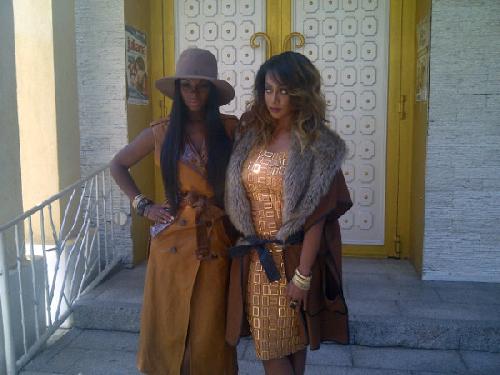 Today, she and La La Anthony are amidst a high-fashion photoshoot for Vibe Magazine and they both have been tweeting sneak peeks. “70’s chic” is how Tika described the theme of the shoot and it is evident in her floppy hat and long sleek hair, as well as La La’s fur and shearling coat. I am also loving the palette, which so far is taking on rich autumnal shades including burnt orange and rustic browns. Texture is always big for Fall and that also seems to be in play with suede, wool and fur.