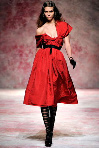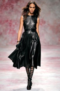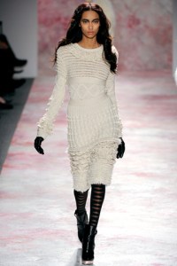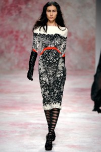 For his Fall 2011 collection, Prabal Gurung was inspired by Miss Havisham, a character from Charles Dickens’ famed novel Great Expectations. Miss Havisham was a glorified spinster, though quite wealthy and it is clear that Prabal wanted to put a youthful, modern and edgy spin on the idea of dressing her, as the novel was after all set in 1861. Naturally, the influence could be felt in the longer hemlines, more modest silhouettes and in the feminine details from the use of lace to the elegantly cinched waists that rounded out some of the looks.
