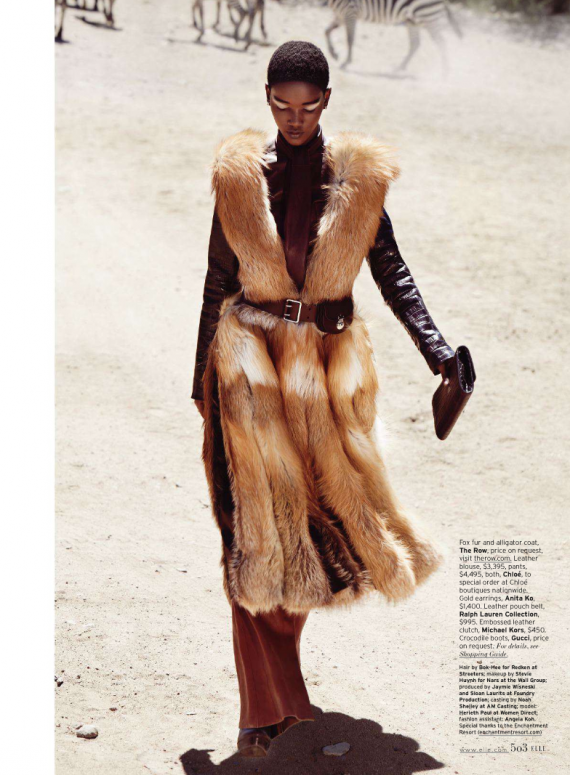 For ELLE’s September 2011 issue, Herieth Paul is modeling some of the season’s hottest furs in her “Hide & Seek” spread. Though all high-fashion and great splurges, these pieces will last you forever from an elegant knee-length fawn fox style by Derek Lam to a fox fur and alligator design from The Row. One of my favorite style inspirations, Kate Lanphear, styled the shoot as she is ELLE’s Senior Style Director.