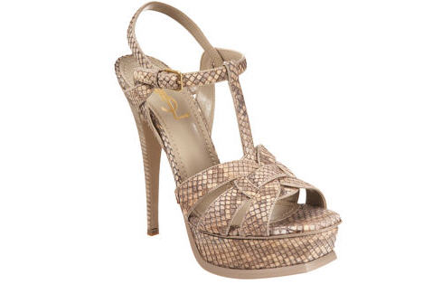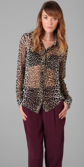Equipment’s Spotted Hyde Brett Blouse retails for $218 and Yves Saint Laurent’s Python Tribute 105 Sandals for $1395. Visit www.shopbop.com and www.barneys.com to purchase.