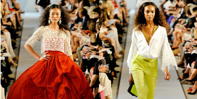 Oscar de la Renta’s Spring 2012 collection is a study in exuberance, color, texture and expert tailoring. Things were definitely different this season, with a young hip set sitting front row (from Nicki Minaj to Justin Timberlake), as well as an infectious buoyant mood which demonstrated that Monsieur de la Renta knows how to make fun fashion, that still looks chic.