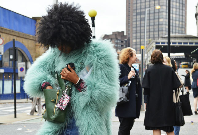 Great minds think alike don’t they? I featured an amazing, totally 1970’s rocker Shearling Coat from Philosophy di Alberta Ferretti last month in my Most-Loved Coats for Fall 2011 picks: a head-turner in spearmint. Guess who was seen rocking this same coat during Spring 2012 London Fashion Week? None other than one of my favorite style mavens, Julia Sarr Jamois.