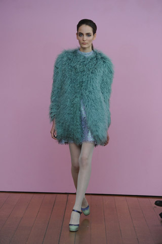 Philosophy di Alberta Ferretti’s Shearling Coat retails for $4295. Visit www.net-a-porter.com to purchase and www.albertaferretti.com for more information. See Julia’s coat on the runway below, worn by Zuzanna Bijoch.