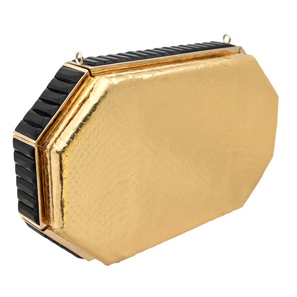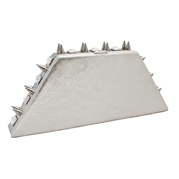 The Madonna Large Pyramid Box Clutch (shown above – $990) is one of my favorite pieces from the collection.Totally edgy and a head-turner on its own, it will look great with everything from a black blazer, skinnies and brogues to a fabulous LBD. The clutch is quite a splurge, but it will be a long-lasting piece that will garner attention as long as you choose to wear it.