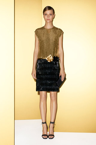 She was seen at the opening of the GUCCI MUSEO in Florence, Italy rocking a gold and black sequin dress with a fringed skirt and rosette flower belt from Gucci’s Resort 2012 collection. I love black and gold as a combination and that Camilla kept her accessories minimal to really let the showstopping dress play centerstage.