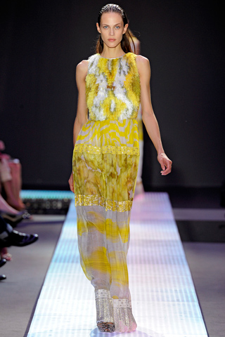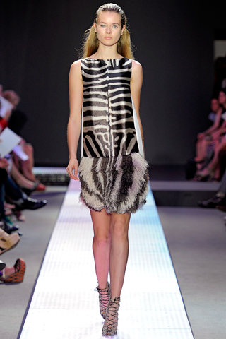 Giambattista Valli dresses celebrities, “It” girls and women with a taste of luxury in every part of the globe. He used the locales and travel destinations of his customers as inspiration for his Spring 2012 collection. These influences were clear in sheepskin fur vests and coats channeling the mountains of Asia, animal prints that were obviously safari-inspired, snakeskin shoes which were an ode to exotics and chunky chain links on footwear which could be traced back to American decadence and glamour. Now that Monsieur Valli is a couture designer, that expert tailoring and sensibility drips from each one of his looks, truly making his ready to wear a step above the rest.