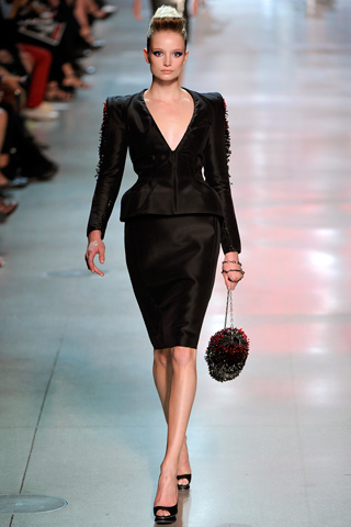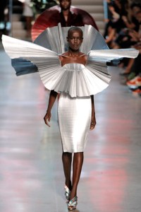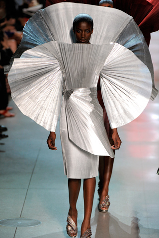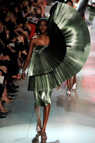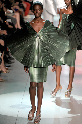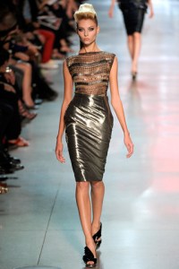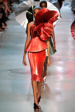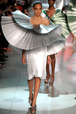 Mr. Arora is the king of eccentric space-age fashion and Spring was no exception with designs that blended armor, Judy Jetson at her sexiest and an amazing array of out of this world dresses at the end that took avant-garde design to a new level. Even from the opening dresses on Jourdan Dunn and Nyasha Matonhodze, you knew the Paco Rabanne woman was fashion forward with a preference for leg-baring silhouettes and metallics.