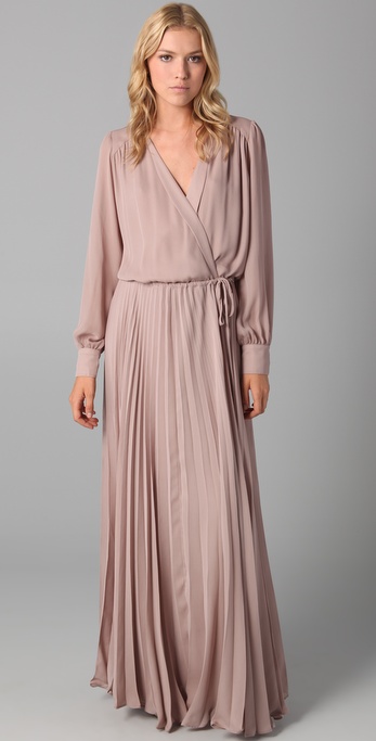 Tunisia is looking for a long-sleeve maxi wrap dress. She’s curvy and for those of us with this body type, wrap dresses are really phenomenal because they accentuate and pull-in the waist, creating that hourglass figure which is coveted by so many women. The maxi dress is a really hot silhouette for the season and there are a number of great choices at both affordable and splurge-worthy prices. Here are my picks below: