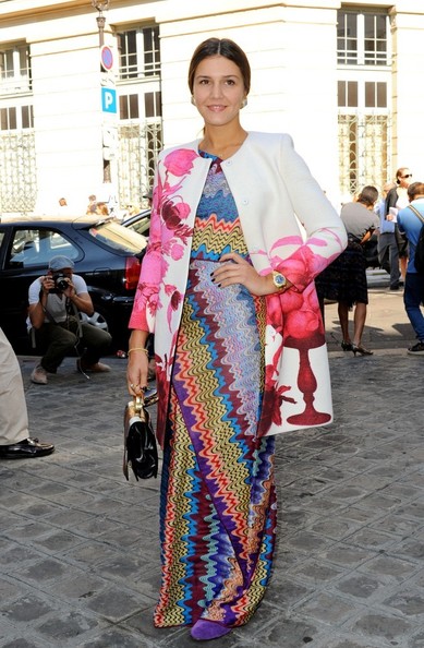 All of fashion’s favorite international celebrities and “It” girls were sitting front row at Giambattista Valli’s Spring 2012 show. Naturally, Margherita was among them, alongside her beautiful sister Teresa. Like she always does so effortlessly, she paired a long Missoni gown with a coat from Monsieur Valli’s Fall 2011 Collection: the Floral Print Coat. Such a bold and vibrant look that only Margherita could pull off.