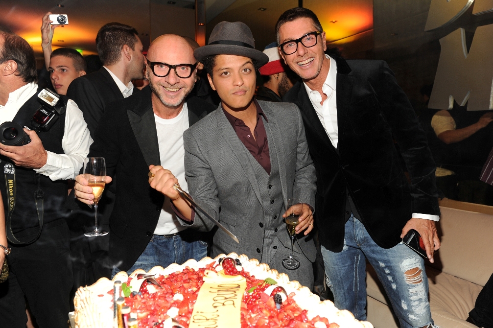 Who better to spend your birthday with than Domenico Dolce and Stefano Gabbana? They’ve taken some very talented fashionable musicians under their wing. Justin Bieber was first and now Bruno Mars.