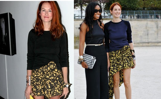 Taylor Tomasi Hill was spotted at Spring 2012 Paris Fashion Week alongside Teen Vogue Accessories Director, Shiona Turini, rocking Thakoon’s Fall 2011 Batik Floral Skirt. I featured her back in May wearing the same skirt at the 2011 Brooklyn Museum Artists Ball. When you look that good why not wear it twice? Such a statement piece that will look great no matter what the season. I cannot wait to see if Taylor wears it again for Fall 2012 Fashion Week.