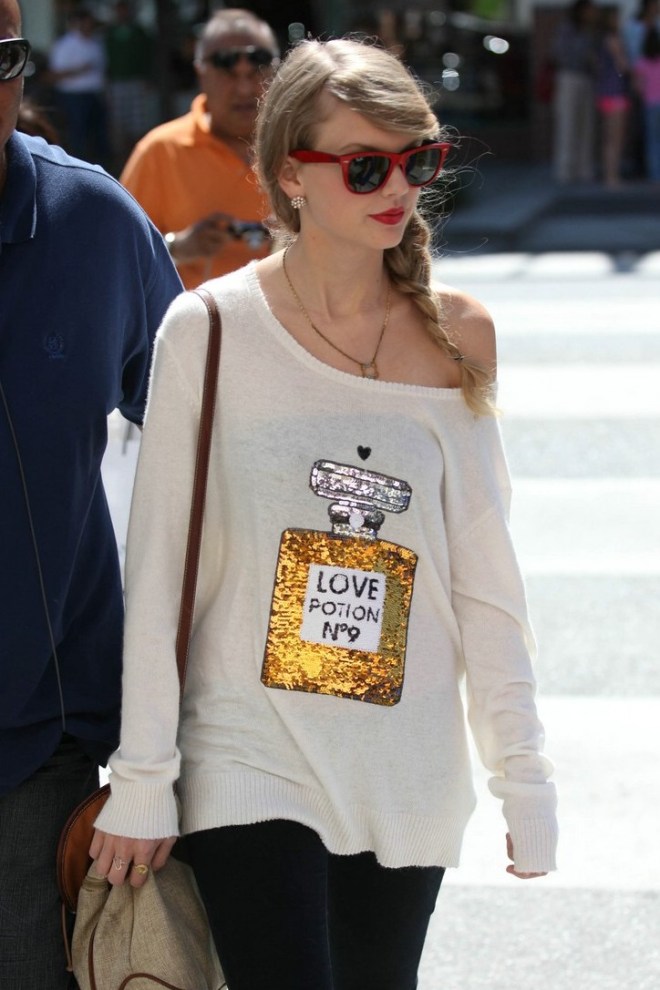Wildfox Couture is a hot brand in the fashion industry, known for great graphic tees with fun and movie-referencing sayings. Celebrities have flocked to it including Alessandra Ambrosio, Beyoncé, Taylor Swift and many more. Specifically, the aforementioned starlets have all worn the same style from the brand: the Love Potion No. 9 Crewneck Sweater. It has sold out everywhere, with good reason because it’s really adorable. A cozy sweater in soft angora and boasting the love potion bottle in sequins, it really is perfect for so many occasions from Casual Fridays in the office with jeans and booties, out running errands with leggings (à la Taylor Swift) or a night out with a mini skirt.