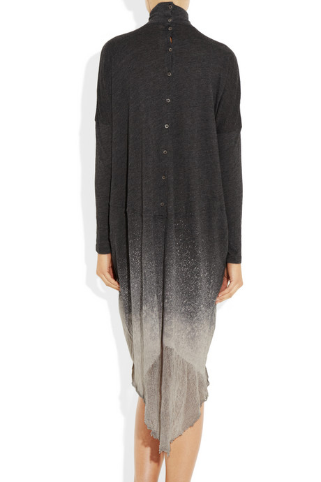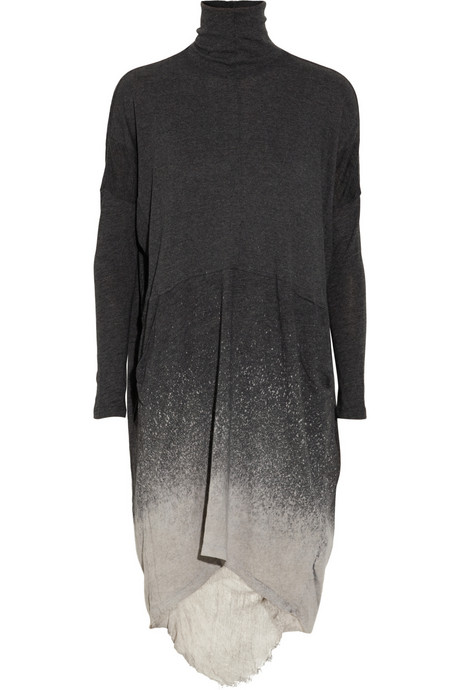 Raquel Allegra has become a go-to designer for style mavens like Gwen Stefani and Mary Kate Olsen and her signature is her shredding technique: used on the sleeves of tops, hems of dresses, scarves and so much more. Her Shredded Jersey Dress is the perfect blend of her signature style with the aforementioned turtleneck dress silhouette that is so perfect for the season. This is a piece unlike anything else in your wardrobe and you will definitely be wearing it for years to come. Crafted from light gray and charcoal dip-dye jersey, it is so sophisticated and feminine, yet still has that dark quality that is inherent to Fall, as well as a certain level of edge.