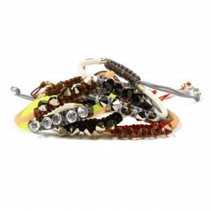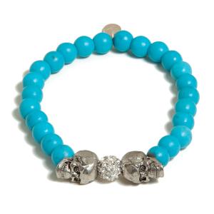 Some of my favorite styles are shown above: the Phoebe and Chloe S. bracelets. The former is adorned with Swarovski crystals and spikes, while the latter boasts a Swarovski-detailed skull. From rust to hematite, every color in the rainbow is available. Such great pieces to throw on and go. You can either wear one or a whole armful.