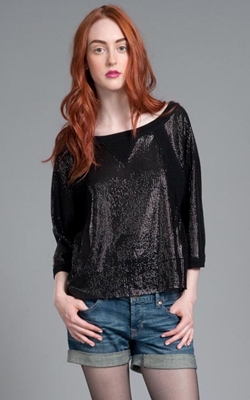 Every woman needs to be in possession of a great red dress, especially for the holiday season. The Scarlet Peek A Boo Frock ($445) is an amazing fit and flare style, crafted from stretch leaf jacquard fabric with an organza crinoline underlay. The Rachel Boot in Ebony ($295) from the Plenty line is the perfect brown boot to own for Fall. I love sequins, for both day and night. Another style from the Plenty line, the Black Sequin Sweatshirt ($248) is great with skinnies and over the knee boots or a bright mini and black pumps.