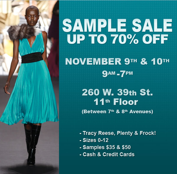 With the holiday season pretty much underway, Tracy Reese is holding her Fall Sample Sale. This is the perfect time to snag dresses and standout separates, perfect for cocktail events, parties and time spent with family. You can even rack up on gifts for all of the fashion-minded women in your life, since samples will range from $35 – $50.