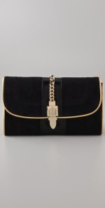 I am often weary of buying black suede clutches because of the upkeep, but I cannot resist the modern elegance of Milly’s Victoria Suede Clutch ($230). In these confusing times when the weather is frigid one week and springtime-warm the next, jumpsuits are a great way to look chic without fear of being improperly dressed. Try Rebecca Taylor’s Leopard Jacquard Jumpsuit (on sale $261) for a sophisticated and unique spin on the classic black jumpsuit. I featured Miu Miu’s Glitter and Calf Hair Pumps ($650) back in September as a great way to do gold for Fall. Pair them with the two aforementioned pieces and BaubleBar’s Rose Bangle Trio and you will be sure to turn heads wherever you go.