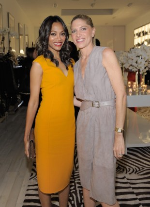 If you aren’t aware of Petra Flannery’s work, she has styled some of Hollywood and the globe’s most well-known stars including Zoe Saldana, Emma Stone, Salma Hayek-Pinault, Minka Kelly, Reese Witherspoon and many more. Her signature is sophisticated and clean looks, which is also a signature of Michael Kors’s designs. She came in at number three on The Hollywood Reporter’s list of “The 25 Most Powerful Stylists in Hollywood”. At the opening, she chose a dusk suede wrap dress and an asymmetric belt in the same shade from Michael Kors’s Fall 2011 collection.
