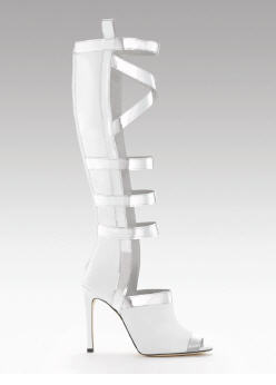 At the 2011 American Music Awards, she rocked the stage in an all-white futuristic outfit and she accessorized with Silver Mirrored Leather and White Kidskin Strappy Boots by Gio Diev. Side ponytail aside, this is an amazing, eye-catching look and that is exactly what you need when you are performing for millions of people and needing to have all eyes on you.