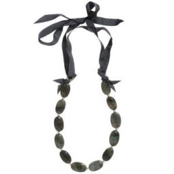 Crafted from labradorite beads and slate grosgrain ribbon, the Labradorite Lei Necklace ($325) looks perfect when layered with other baubles for a statement-making look.