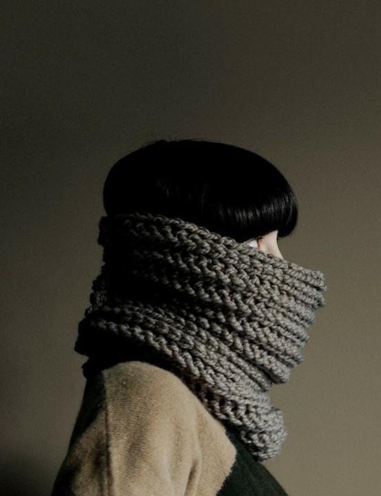 Though the weather in NYC hasn’t quite been warm enough of late to rock a chunky knit cowl, you can never go wrong with one, especially when paired with a sleek chignon and an eye-popping lip.