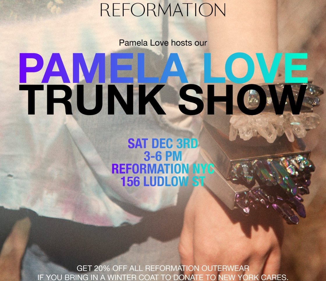 Pamela Love and Reformation are two brands that I love so combining the two is a match made in fashion heaven. Pamela Love will be hosting a trunk show of her pieces on December 3rd from 3pm – 6pm at the Reformation’s store in New York City. All Reformation outerwear will be 20% off if you bring a winter coat to donate to New York Cares.