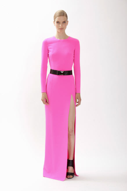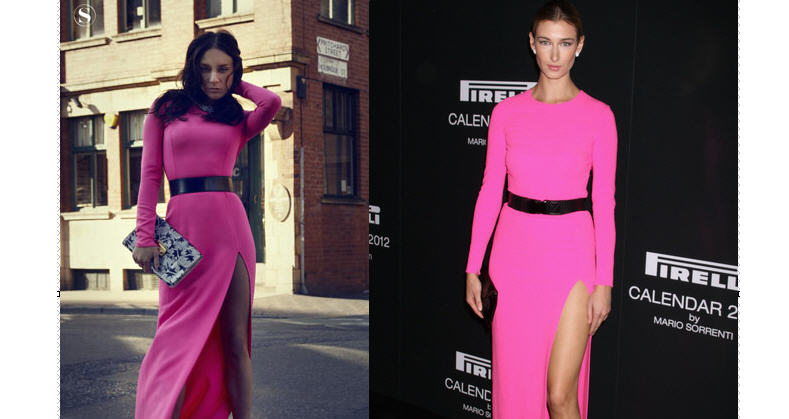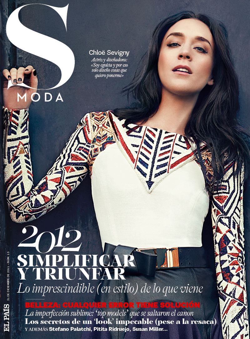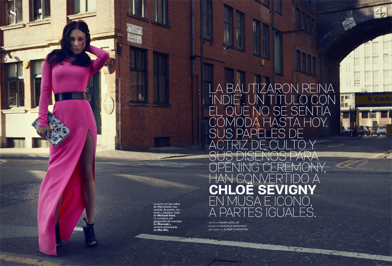 She is the cover girl for S Moda’s December 30th edition and in the fashion spread she wears a black Elastic Speedclip Belt ($250) and a neon pink Slash Gown ($3995) from the collection. It is styled with booties from the brand and a Miu Miu clutch. Chloe usually goes for downtown meets retro looks, but I love this sleek ensemble on her.