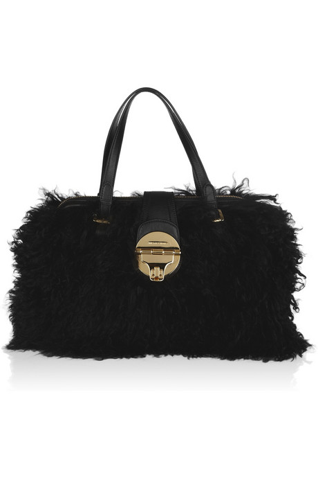 MICHAEL Michael Kors has an amazing piece in the Margo Frame Satchel. Crafted from black dyed Mongolian fur with black leather trim, it is a great handbag to add to your wardrobe for the season. It features a chic push-lock closure, two buckle-detailed top handles and a framed top: a totally on-trend look.