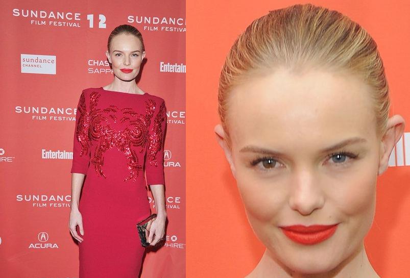 At the premiere of her new film, “Black Rock”, at the 2012 Sundance Film Festival, she went for all red in an embellished dress from Antonio Berardi’s Spring 2012 collection, a cherry red lip and pointed toe pumps from Casadei. I am not a huge fan of monochrome looks, but this is spot on. Kate looks flawless and I love that this ensemble is both elegant and sexy.